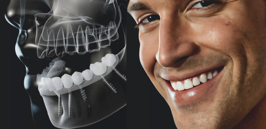 Перед операцией пациент проходит трёхмерную томографию, а ортопед заранее подбирает форму будущих зубов и высоту смыкания. - Установка опор.
