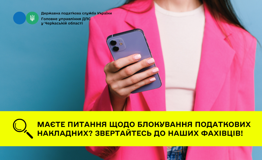 Звертаємо увагу платників податків, що з питань зупинення реєстрації податкових накладних/розрахунків коригування в Єдиному реєстрі податкових накладних можна звернутись до Головного управління ДПС у Черкаській області особисто (18002, м. Черкаси, вул. Хрещатик, 235), телефоном «гарячих ліній»: (0472) 33-91-97, (063) 525-95-27 або на електронну скриньку комунікаційної податкової платформи ck.ikc@tax.gov.ua.