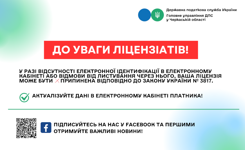 Відповідно до п.1 ст. 42 Закону України від 18 червня 2024 року № 3817 «Про державне регулювання виробництва і обігу спирту етилового, спиртових дистилятів, біоетанолу, алкогольних напоїв, тютюнових виробів, тютюнової сировини, рідин, що використовуються в електронних сигаретах, та пального» - ліцензія на право провадження відповідного виду господарської діяльності надається, за умови реєстрації або взяття на облік суб'єкта господарювання у податкових органах та повідомлення таким суб'єктом господарювання про об'єкти оподаткування і об'єкти, пов'язані з оподаткуванням, через які здійснюватиметься відповідний вид ліцензійної діяльності, відповідно до вимог пункту 63.3 статті 63 Податкового кодексу України, та проходження електронної ідентифікації онлайн в електронному кабінеті з дотриманням вимог Закону України "Про електронну ідентифікацію та електронні довірчі послуги" і здійснення листування з контролюючим органом через електронний кабінет відповідно до прийнятої контролюючим органом заяви про бажання отримувати документи через електронний кабінет.