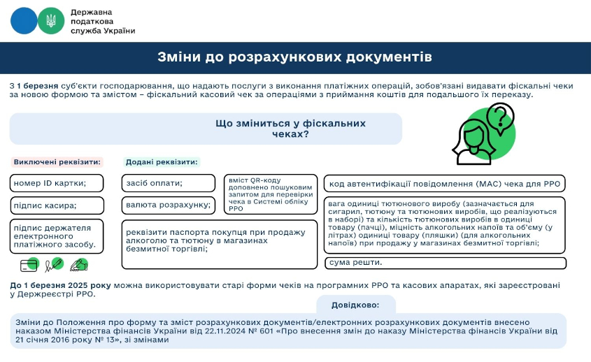 З 1 березня субʼєкти господарювання, що надають послуги з виконання платіжних операцій, зобовʼязані видавати фіскальні чеки за новою формою та змістом – фіскальний касовий чек за операціями з приймання коштів для подальшого їх переказу.