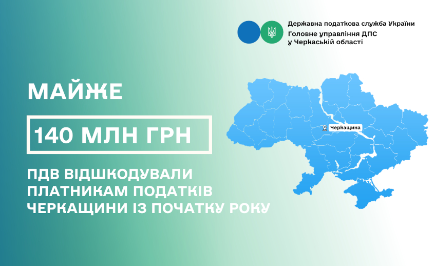 У цілому в січні 2025 року платники Черкаської області отримали бюджетне відшкодування ПДВ грошовими коштами на загальну суму 139,715 млн грн, за відповідний період 2024 року бюджетне відшкодування було отримано на загальну суму 104,202 млн гривень.