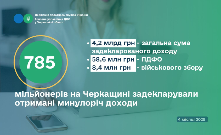 Загальна сума доходів, отриманих такими громадянами, сягає понад 4,2 млрд грн. Мільйонерами задекларовано до сплати 58,6 млн грн ПДФО та 8,4 млн грн військового збору.