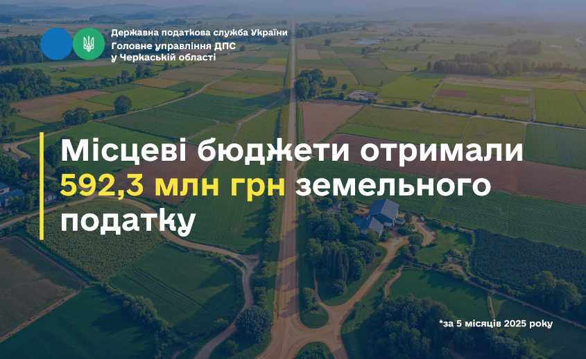 Начальник ГУ ДПС у Черкаській області Тетяна Харьковська наводить дані про надходження земельного податку цьогоріч. Так, за 5 місяців 2025 року до місцевих бюджетів надійшло 592,3 млн гривень земельного податку. З цієї суми 509 мільйонів гривень сплатили юридичні особи.