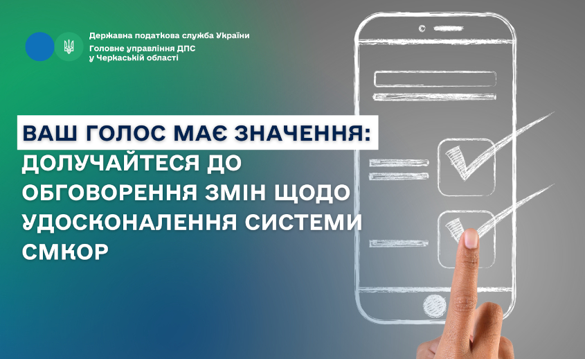 Державна податкова служба України запрошує бізнес долучитися до обговорення змін, спрямованих на удосконалення роботи системи моніторингу критеріїв оцінки ризиків (СМКОР). Як зазначила очільниця ГУ ДПС у Черкаській області Тетяна Харьковська, це важливий крок до ефективного діалогу з бізнесом, який має спростити роботу підприємців, не зменшуючи при цьому наповнення бюджету.