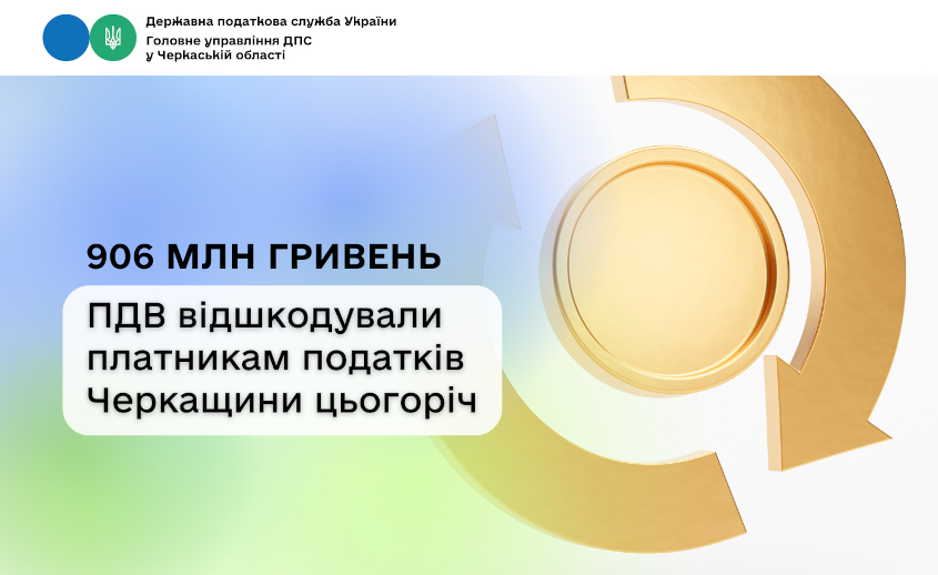 У цілому в січні-вересні 2025 року платники Черкаської області отримали бюджетне відшкодування ПДВ грошовими коштами на загальну суму 906,3 млн грн, за відповідний період 2024 року бюджетне відшкодування було отримано на загальну суму 1 048,3 млн гривень.