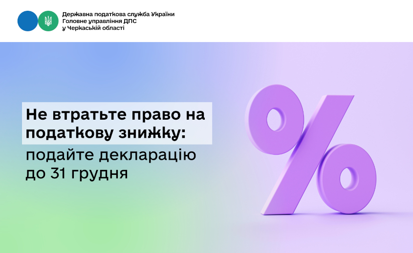 Менше двох місяців залишилося, щоб скористатися правом на податкову знижку. До 31 грудня включно необхідно подати податкову декларацію про майновий стан і доходи для отримання компенсації частини коштів з бюджету. Про це нагадує очільниця Головного управління ДПС у Черкаській області Тетяна Харьковська.