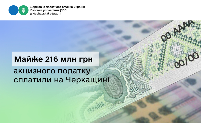 За 10 місяців 2025 року платники податків Черкаської області сплатили до державного та місцевих бюджетів 215,7 млн грн акцизного податку.