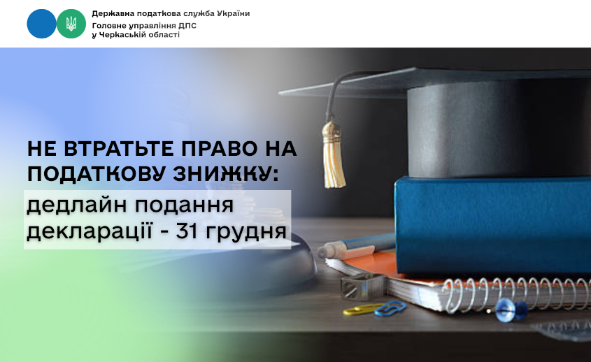 Менше трьох тижнів залишилося, щоб скористатися правом на податкову знижку. До 31 грудня включно необхідно подати податкову декларацію про майновий стан і доходи для отримання компенсації частини коштів з бюджету. Про це нагадує очільниця Головного управління ДПС у Черкаській області Тетяна Харьковська.