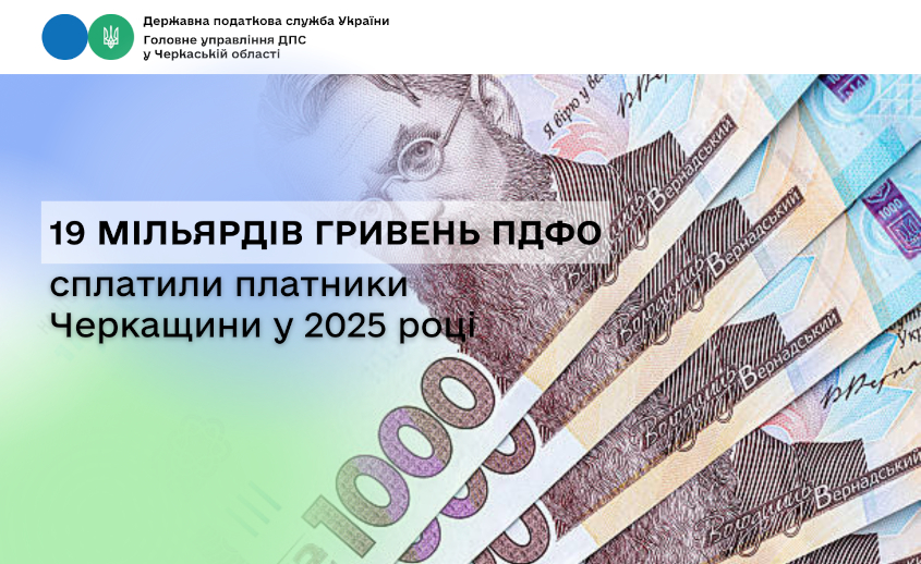 Упродовж 2025 року від платників податків Черкащини до бюджетів усіх рівнів надійшло 19,4 мільярда гривень податку на доходи фізичних осіб (ПДФО).