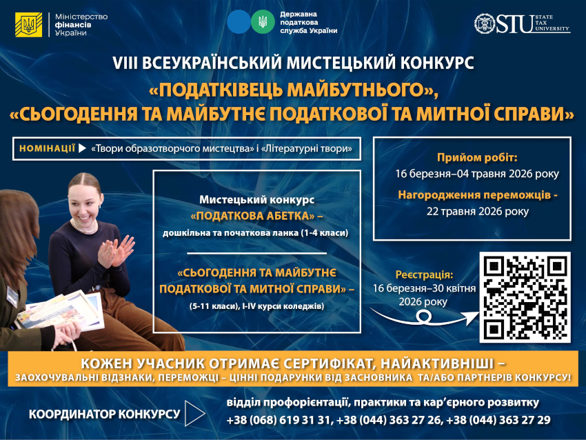 Детальніше про конкурси на сайті Державного податкового університету: https://surl.li/lotkhv