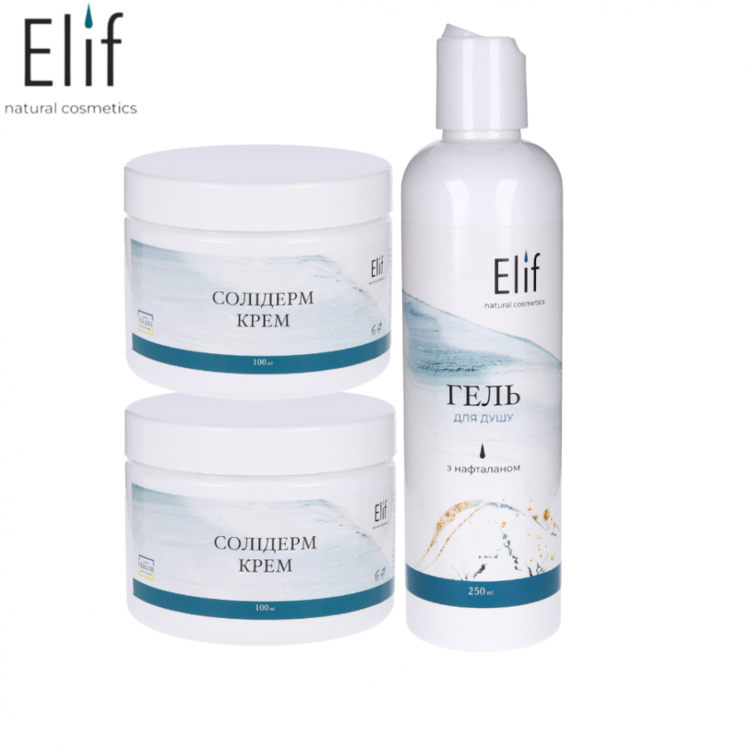 - Нафталановий крем Еліф та Нафталанська нафта — продукти на основі лікувальної нафталанської нафти з вираженими антисептичними та загоювальними властивостями.