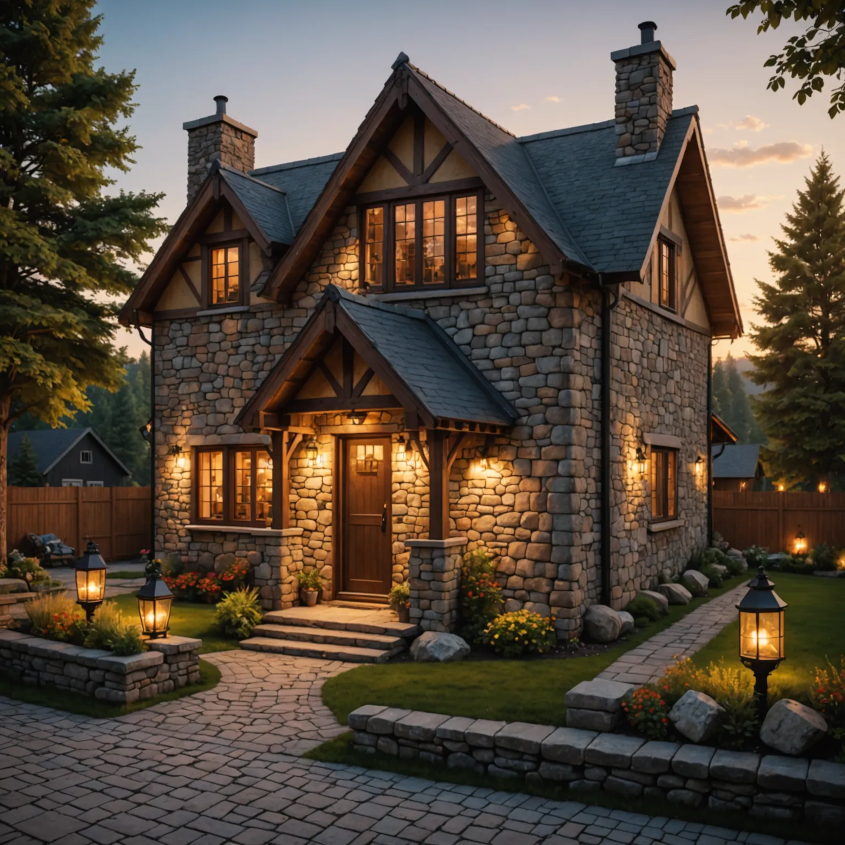 Не забувайте і про декоративне підсвічування фасаду. Вдале розташування світильників підкреслить фактуру каменю та зробить будинок виразним навіть у темний час доби. Ландшафтні елементи та освітлення створюють завершений образ, який справляє враження на гостей та підвищує комфорт власників.