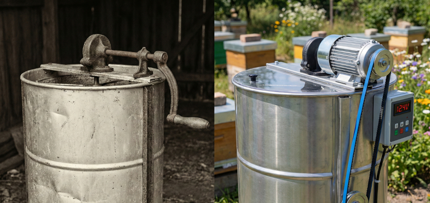 Крутити ручку по 5-6 годин поспіль у липневу спеку, коли температура в тіні сягає +30°C — це вже не пасторальна романтика, а прямий шлях до лікарняного ліжка з діагнозом "епікондиліт" (лікоть тенісиста) або зірваною спиною. До того ж, сучасні реалії диктують нові умови: молодь поїхала до міст або пішла захищати країну, і пасічник часто залишається сам на сам із тонами меду. Як зазначають інженери магазину бджільництва Парк Плюс, викидати "дідову бочку" не обов'язково. Її можна перетворити на сучасний напівавтомат, встановивши якісний електропривід. Це рішення, яке поєднує економію з технологічним проривом.