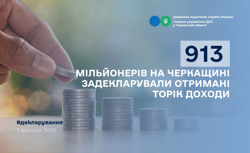 913 громадян Черкаської області (станом на 1 серпня 2025 року) задекларували отримані за попередній рік доходи в розмірі понад мільйон гривень.