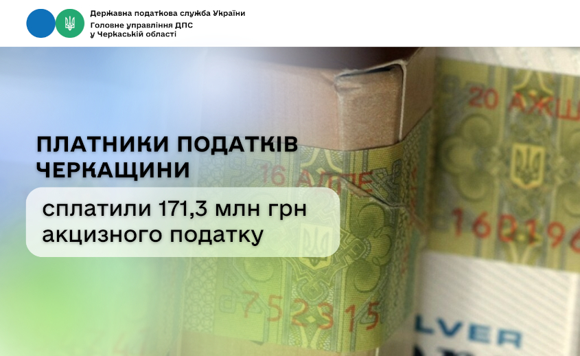 За січень-серпень 2025 року платники податків Черкаської області сплатили до державного та місцевих бюджетів 171,3 млн грн акцизного податку.