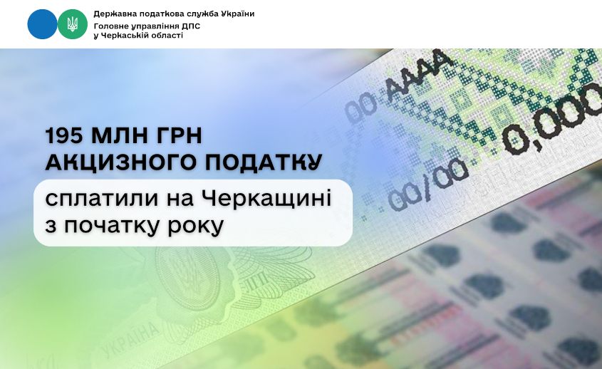 За січень-вересень 2025 року платники податків Черкаської області сплатили до державного та місцевих бюджетів 195 млн грн акцизного податку.