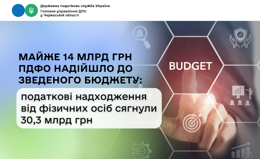 За січень-вересень 2025 року надходження платежів, контроль за надходженням яких покладено на управління оподаткування фізичних осіб ГУ ДПС у Черкаській області, склали 30,3 млрд грн, що на 5,6 млрд грн, або 22,5 % більше, ніж за відповідний період 2024 року.