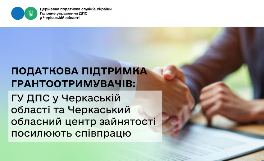 Керівники Головного управління ДПС у Черкаській області та Черкаського обласного центру зайнятості провели робочу зустріч, щоб дати старт новій системі податкового супроводу для учасників програми «Власна справа». Тепер підприємці Черкащини, які отримують державні гранти, матимуть надійне плече підтримки з боку податківців на кожному етапі розвитку свого бізнесу.