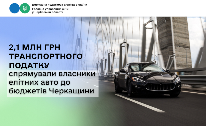 Протягом 3 місяців 2026 року власники елітних автівок сплатили до місцевих бюджетів Черкащини 2,1 млн грн транспортного податку.