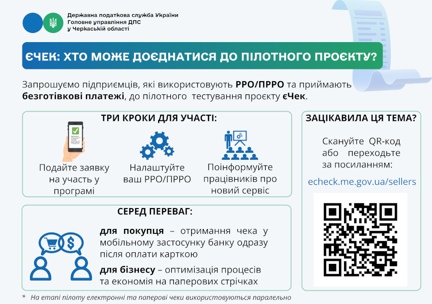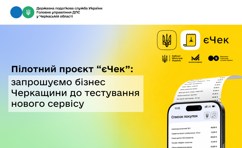 Запрошуємо суб’єктів господарювання Черкащини долучитися до пілотного тестування «єЧек»!
